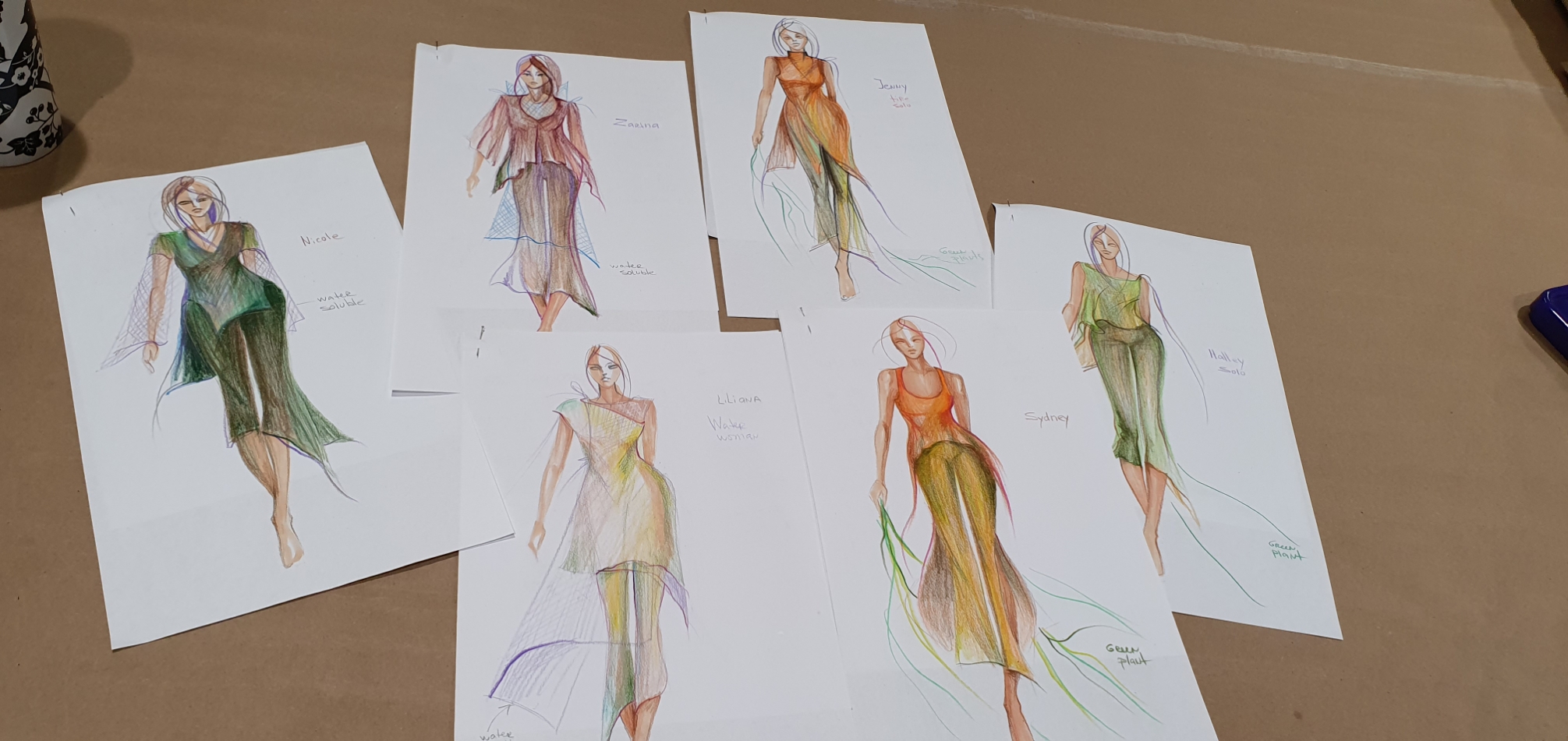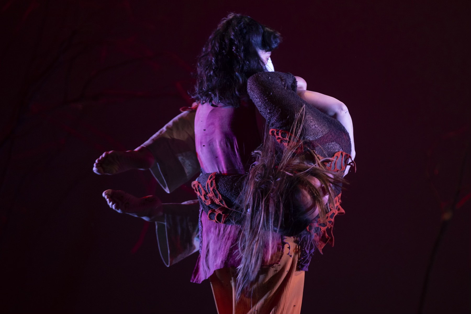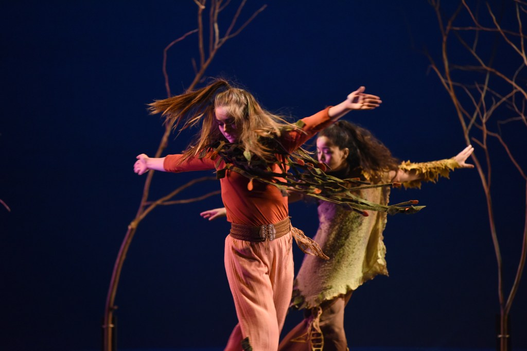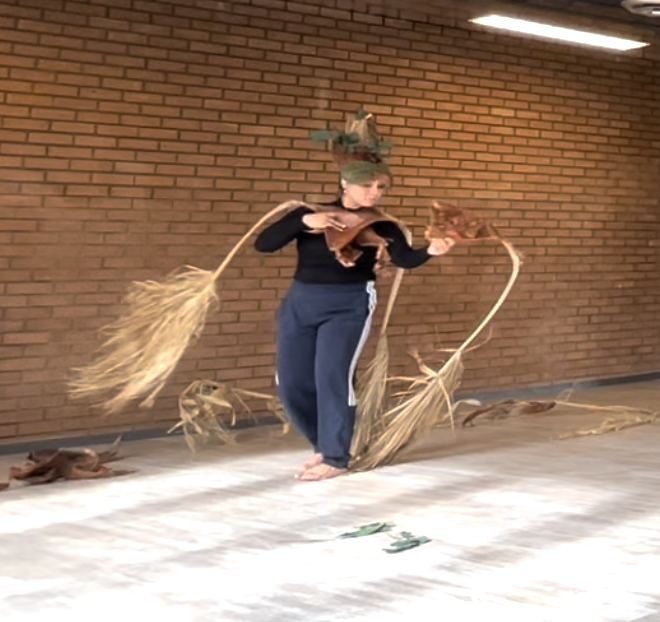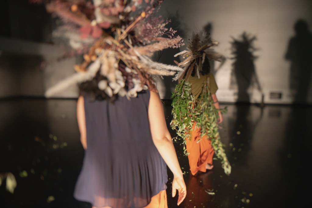 Costume and headpiece ideas for Haikeus: Field III. Dress and Costume Design: Galina Mihaleva. Hats and green branch costumes: Mary Fitzgerald. Dancers: Jenny Gerena and Halley Willcox.